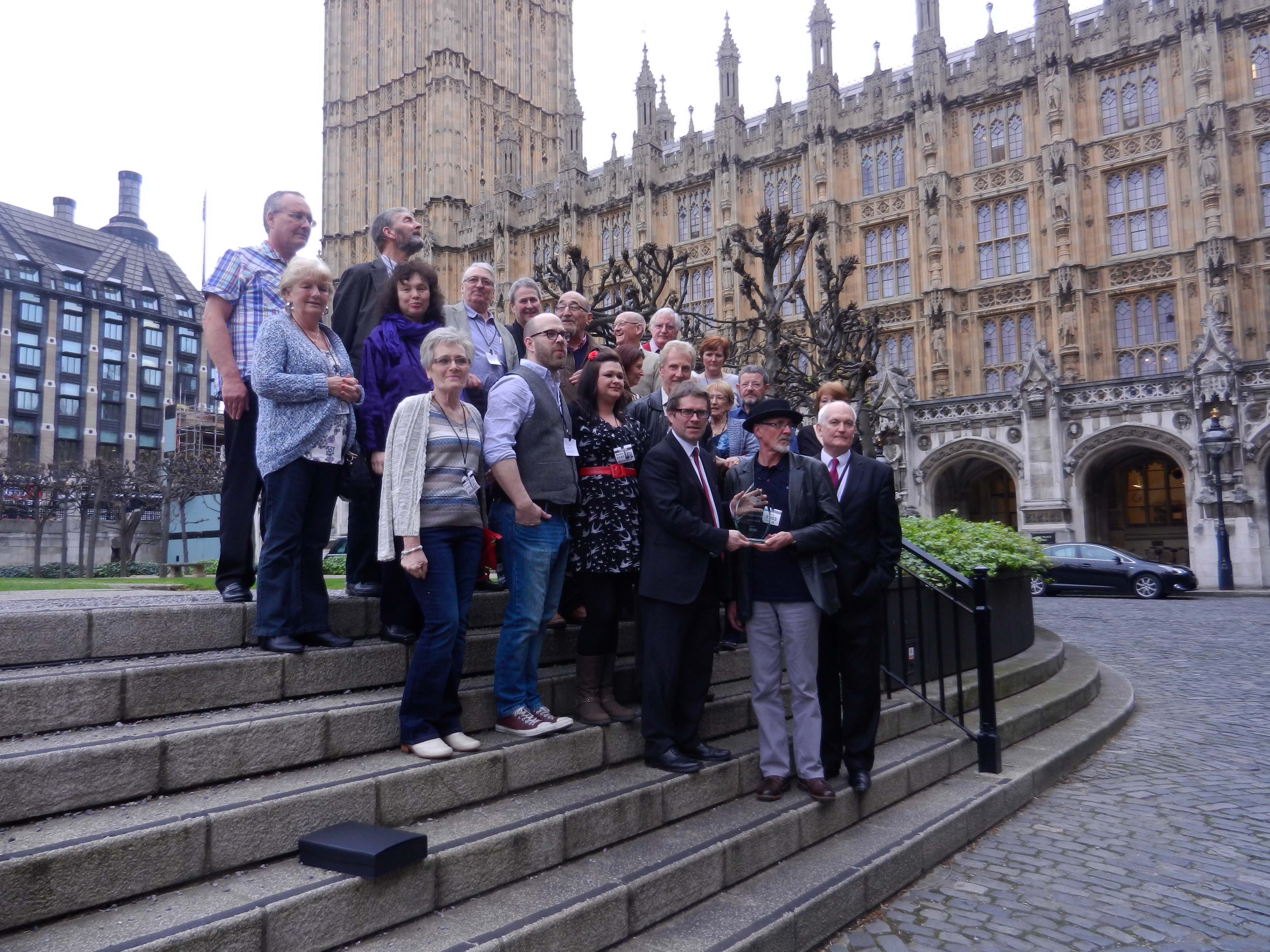 Altogether an unforgettable experience for which we must thank a whole bunch of people:- Chris Ruane, Kevin Brennan and Jenny Chapman for getting the thing to happen at all, Mike & Sheila, Alun and Jeff for doing the organising (Jeff and Chris lugged our p.a. all the way down to find it wasn’t required), the Musician’s Union for sponsoring the event and awards and Voel Coaches for giving us two fantastic drivers, for whom nothing was too much trouble. Hope I haven’t forgotten anybody.