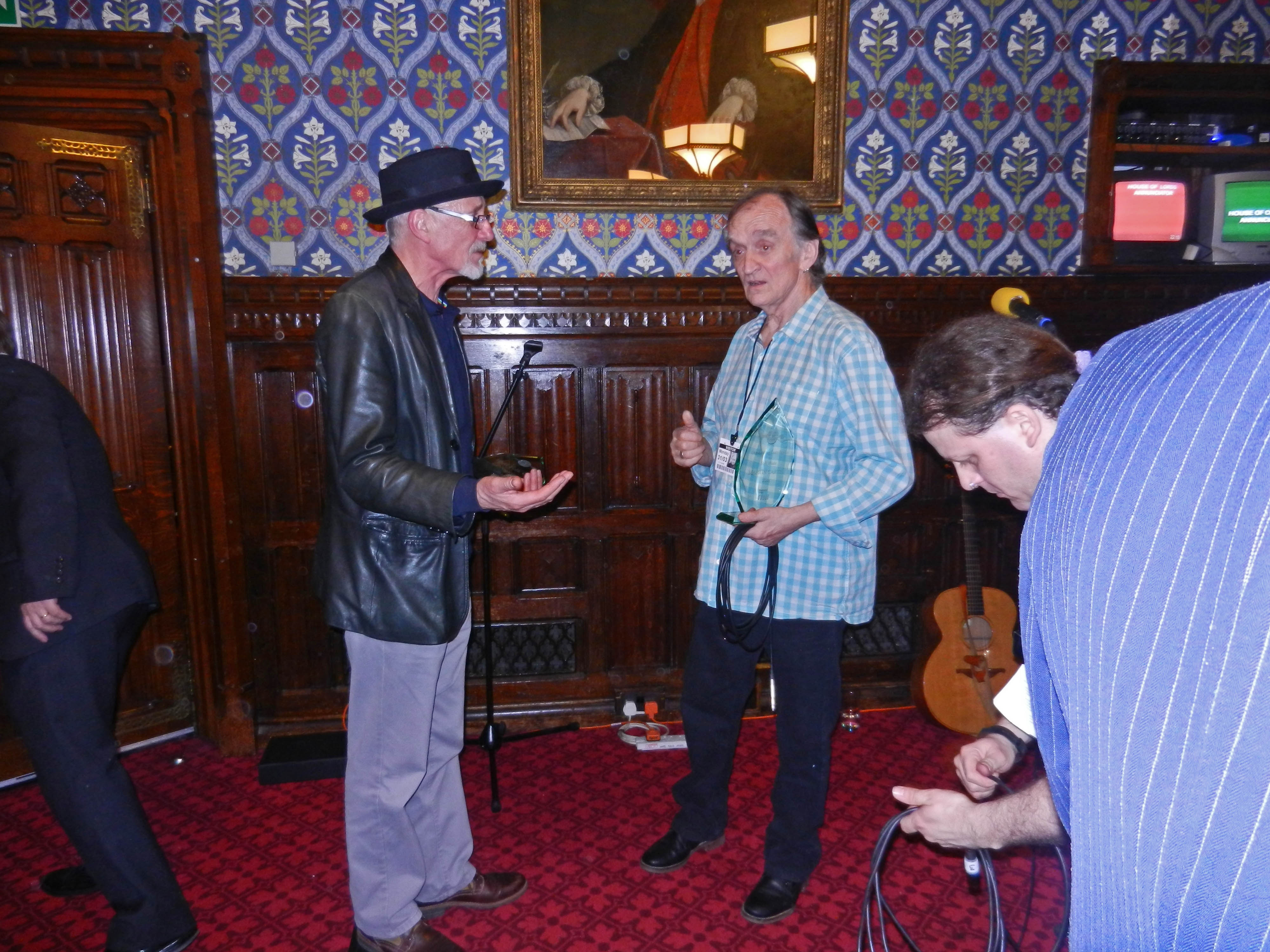 Earlier in the day, Jeff had met Sir Tom Jones (busking in the tube) and had a photo to prove it. Must have made Tom’s day. There’s a picture of Jeff boring the arse off Martin with the details. Credit to Martin for soldiering on when interrupted first by Big Ben and later by other various Parliamentary bells and buzzers. Colin’s claim to fame will for ever be that he helped Mr. Carthy out with some of his words.
